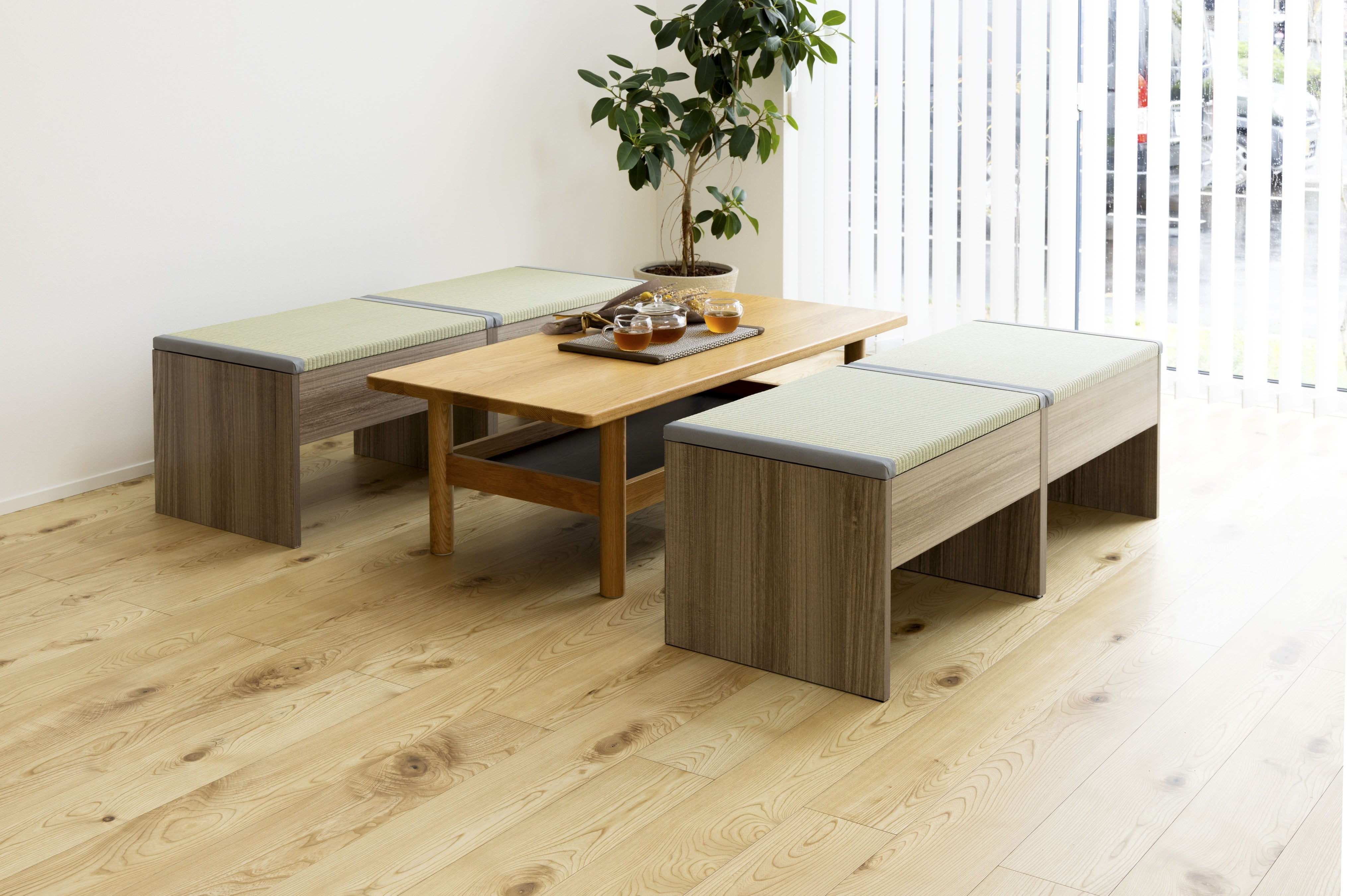 - Natural wood tatami bench